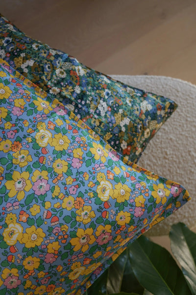 Silk Pillowcase made with Liberty Fabric THORPENESS BLUE GREEN