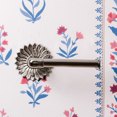 The Sun Toilet Roll Holder has a beautiful balance of elegance with the flower backplate and industrial with the pipe holder. Jazz up your bathroom or cloakroom with something a little bit more unique. Available in lacquered brass and chrome finishes. Designed in the UK and handcrafted by independent artisans in India with pure brass.