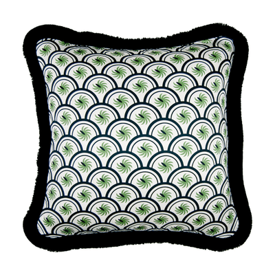 The Coco Cushion Black & Green with Fringing