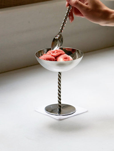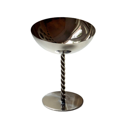 Stainless steel dessert cup with twirl base. A touch of sophistication to any table setting, elevates the presentation of your favorite sweets, fruits, or chilled desserts.