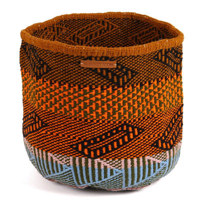 VUNJA: Large Orange, Black and Blue Wool Basket
