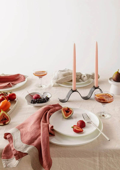 Styled with or without candlesticks, on a table or mantel, the duo waved candle holder is a unique feature piece.