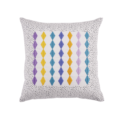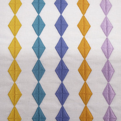 This artisan-made linen cushion cover features raised hand embroidery, creating a stunning 3D effect with a string of diamond motifs. The intricate design adds depth and texture, transforming a classic pattern into a modern, eye-catching piece.