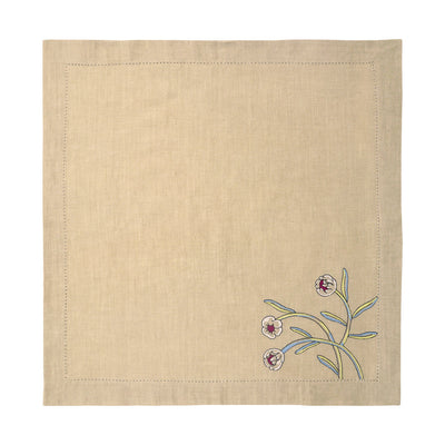 Elevate your dining experience with these exquisite 100% linen napkins, featuring delicate hand embroidery in soothing shades of blue and yellow florals. Set against a crisp white background, the embroidery mimics a painterly effect-soft, flowing strokes that evoke the gentle blending of watercolor on fabric. This subtle artistry brings a serene, nature-inspired palette to your table