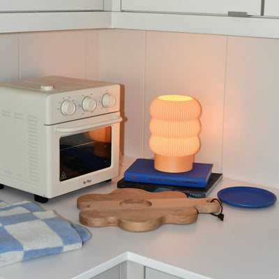 This is Lola, a sculptural table lamp with smooth pleats, soft geometry, and a velvety matte finish. Simple but expressive, Lola was made to bring a warm, playful energy to your space. Made in small batches using plant-based materials, it's lighting made with intention, and built to last.