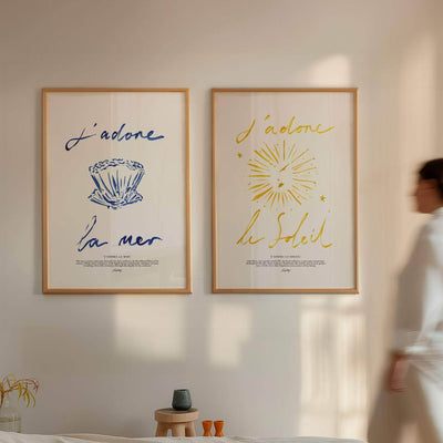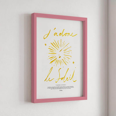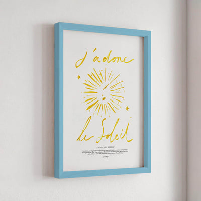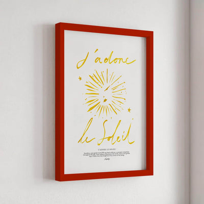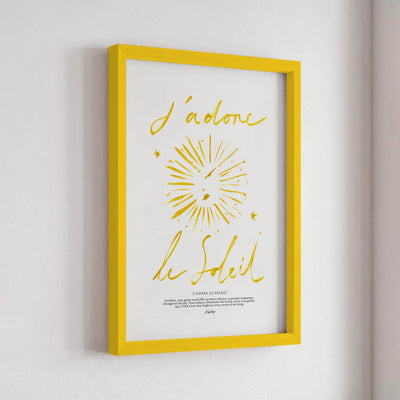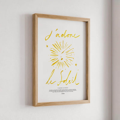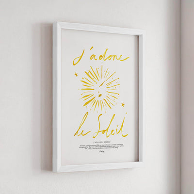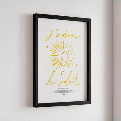 A stripped-down rendition of the original "J'adore le Soleil" print, focusing on simplicity and elegance. With coarse brush strokes and subtle details, it embodies the essence of adoration for the sun in its purest form, radiating warmth and joy.