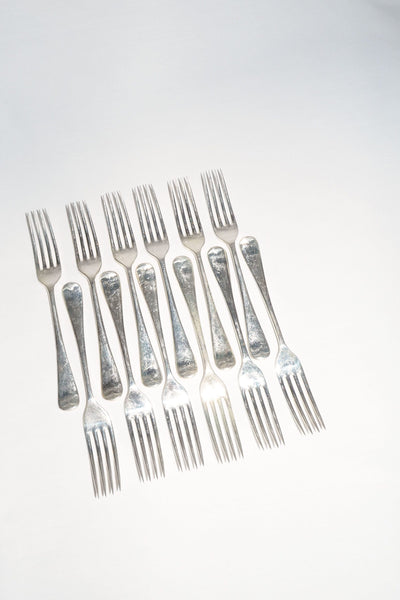 This set of 12 Victorian Silver Plate Forks have a wonderful patina to the silver plate. They are delightfully tactile and the perfect size and weight. Ideal for those seeking something special.