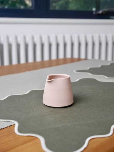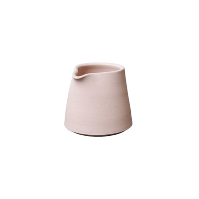 Wheel thrown in a blush pink clay, this ceramic jug is unique in texture and character. The unglazed, tactile exterior is contrasted by the glazed gloss interior. We use stains to colour the clay before throwing with it on the wheel, meaning that the jug is pigmented pink throughout.