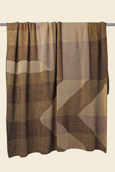 Soft, breathable, and designed to move effortlessly between seasons, this knitted blanket is made from a luxurious blend of merino wool and organic cotton. The graphic pattern plays with geometry in four tonal shades that blend into one another—adding texture and interest without overwhelming a space. It’s warm enough for cooler evenings, yet light enough for summer use, making it a versatile layer for any room.