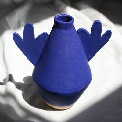Diamond vase with flower arms in the boldest blue, or creamy white glaze and deeply speckled stoneware