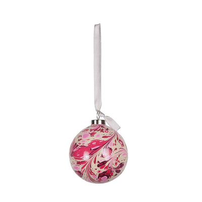 These delightful baubles are hand marbled in Lincolnshire making each one completely unique. This beautiful palette is a mixture of rich pink, red and ecru. Deep burgundies and berry reds don't stray far from traditional Christmas colours. While our punchy pink shades add a splash of vibrancy to nestle among the tree branches.