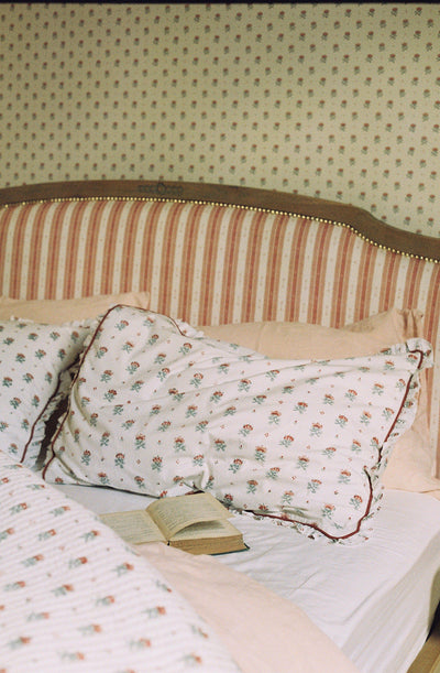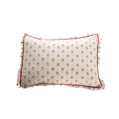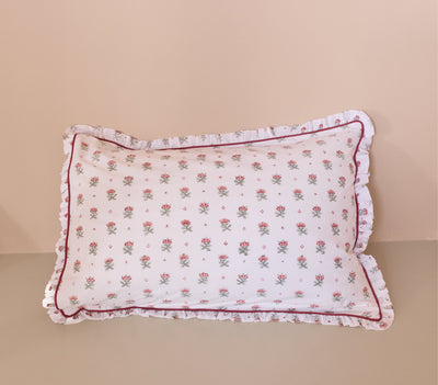 Hand block printed in India, these crisp white pillow cases will elevate the bed linen you already have, or can be paired with our hand block printed quilts for the full set. Piped in the signature deep red and finished with a frill, they really are quite special. Please note, each pillow case is entirely unique as there will be natural irregularities in the print due to the hand block printing process.