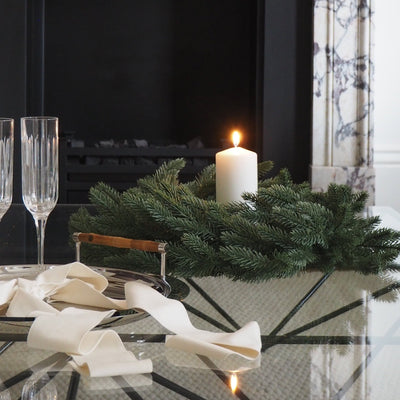 Ett Hem recommend using a strong sucker hook to hang your wreath on your door on over a mantel piece. We also love to use laying down  in table displays, surrounded by candles.