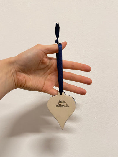 Finished with a dark blue satin ribbon and a gold foiled keepsake box.