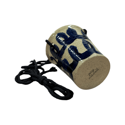 Bisque fired once when dry, stamped, waxed and coated in a glossy transparent glaze. The piece is then decorated using cobalt oxide and placed back in the kiln for its final 1240 degree centigrade glaze firing.
