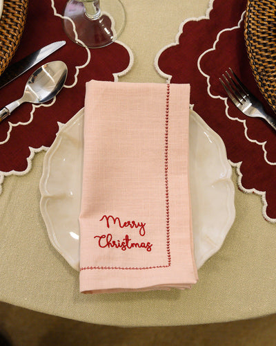 Openwork Napkin Pink Merry Christmas