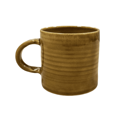 Stoneware mug thrown on the wheel in an off white clay with a handle attached by hand.