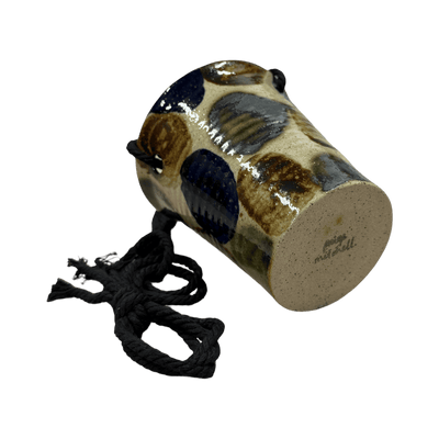 Bisque fired once when dry, stamped, waxed and coated in a glossy transparent glaze. The piece is then decorated using various oxides and placed back in the kiln for its final 1240 degree centigrade glaze firing.