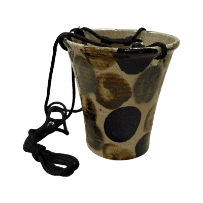 Stoneware pot thrown on the wheel in speckled clay with three holes punched through the rim.