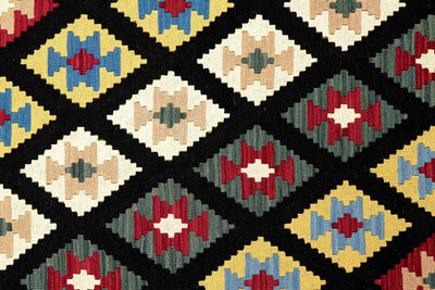 Length (in cm): 263 Width (in cm): 206 Color: Black Square Meters (sqm): 5.42 Border: Grey Pile Height (in mm): approx. 5 Type: Kelim Size Code: 200x250 Weight (in kg): approx. 8.13
