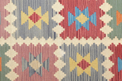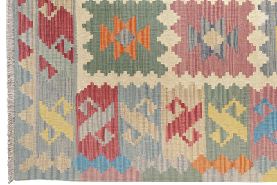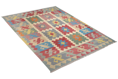 Length (in cm): 238 Width (in cm): 170 Color: Beige Square Meters (sqm): 4.05 Border: Multi-colored Pile Height (in mm): approx. 5 Type: Kelim Size Code: 170x240 Weight (in kg): approx. 6.08