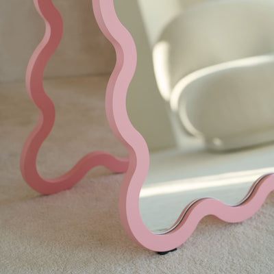 Meet the free-standing Hvyli 16 wavy mirror. With an accentuated, recognizable wavy design, this unique wall or floor mirror transforms every living room, bedroom, cafe, gallery, office or workspace into a stunning and stylish interior.