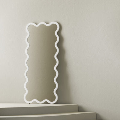 Meet the Hvyli 16 mirror. With an accentuated, recognizable wavy design, this unique wall or floor mirror transforms every living room, bedroom, cafe, gallery, office or workspace into a stunning and stylish interior.