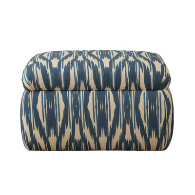 Ottoman with rounded lines, available to be upholstered in various fabrics.