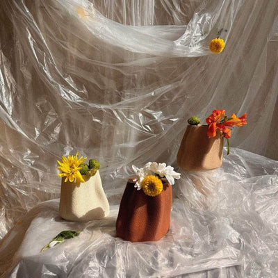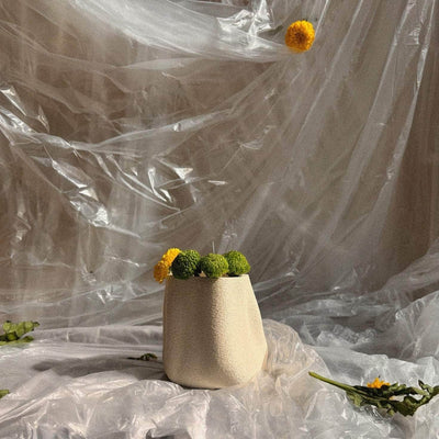 This textured storage pot is 3D printed using recycled PLA - a biodegradable and eco-friendly material derived from renewable resources like cornstarch or sugarcane.