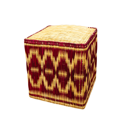 Introducing the stunning handmade straw stools, featuring a sophisticated geometric pattern in rich bordeaux tones. These pieces exude distinctive elegance and are perfect for both indoor and outdoor use, making them an ideal addition to balconies, living rooms, or bedrooms. Beyond their striking aesthetic, these stools stand out for their lightweight durability, adding an irresistible boho touch to your home décor.