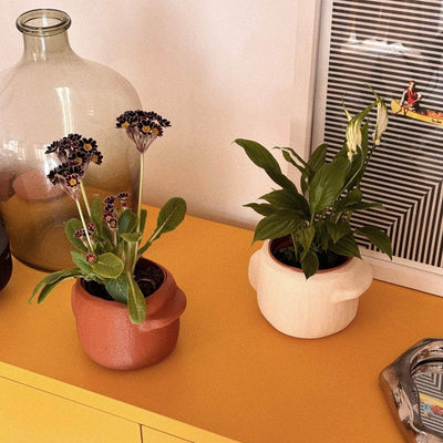This textured planter is 3D printed using recycled PLA - a biodegradable and eco-friendly material derived from renewable resources like cornstarch or sugarcane.