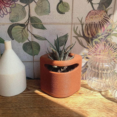 This planter is 3D printed using recycled PLA - a biodegradable and eco-friendly material derived from renewable resources like cornstarch or sugarcane.