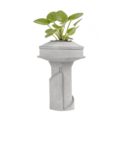 Siment Water Tower 2 is part of our collection of cast concrete plant holders that celebrate the many typologies of Indian water towers that we have documented over time. We rendered the functional and architectural features of the tower into decorative elements, each of which are unique to every tower.