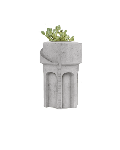 Siment Water Tower 3 plant holder is part of our collection of cast concrete plant holders that celebrate the many typologies of Indian water towers that we have documented over time. We rendered the functional and architectural features of the tower into decorative elements, each of which are unique to every tower.