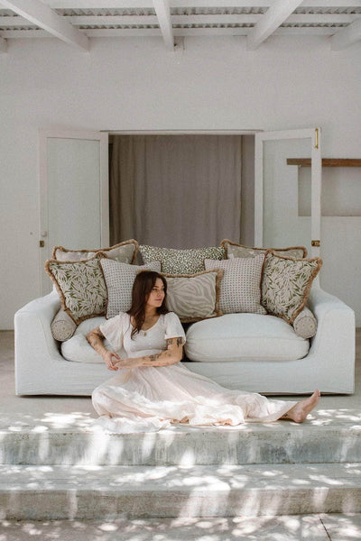 This cushion cover is made of 100% polypropylene. Our custom woven fabric has a soft, luxurious feel and is produced energy-efficiently without harmful coatings. These cushions are made to keep their quality in sun and the rain. Because the fabric has not been chemically coated, it does absorb water, but then easily dries without any unpleasant smells of discoloring. This cushion keeps its color in the sun, is wrinkle-free and dirt-repellent (cocktails, sunscreen, you name it!). You can leave the cushions out in the light rain. If you like your cushions to stay dry, we do recommend bringing them inside during heavy rain. Would you like to use the cushion outdoors and indoors? Then we recommend choosing the outdoor filling. The outdoor filling is made from silicone. The filling is sturdier than an indoor filling, but is still plenty soft to be used indoors as well. Would you like to use the cushion indoors only? We recommend choosing the feather indoor filling. This filling is made from an eco cotton filled with recycled down and feathers.