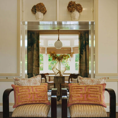 This luxurious cushion, adorned with intricately embroidered palm trees, evokes a sense of timeless tropical elegance, perfect for elevating any space. The detailed craftsmanship adds depth and artistry, transforming each cushion into not only a stunning decorative accent but also a comfortable retreat to relax and unwind.