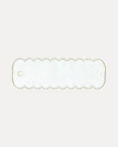 Add a special touch to your table with our personalized red linen napkin ring. Featuring scalloped edges and an elegant white trim, this ring is the perfect addition to any table setting.
