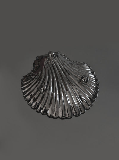 This sculptural silver-tone vide-poche shaped like a seashell, features fluid, rippled contours that catch the light beautifully. Both functional and decorative, it adds a refined, organic touch to any entryway, bedside table, or desk.