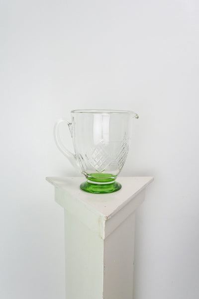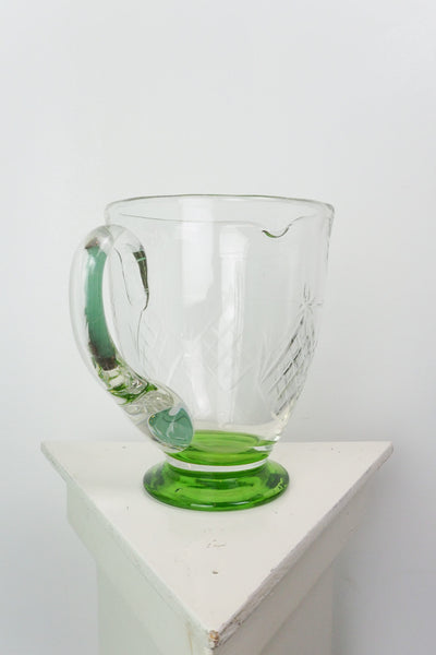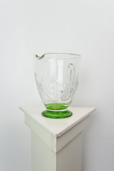 A classic hand blown green and crystal cut vintage jug.