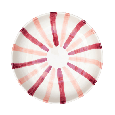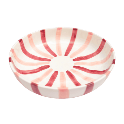 Introducing our Luna Bowl. A handmade ceramic serving bowl in stripes of blush and grenadine.