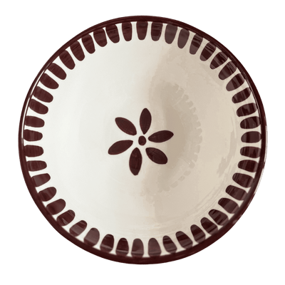 Meet Veraneo, the handmade ceramic serving bowl in a rich espresso, hand-painted with bold, expressive florals and finished with a playful inner striped rim.
