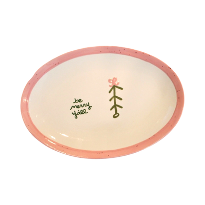 Meet the sweetest slice of vintage holiday nostalgia. Our hand-painted “be merry y’all” tray is hand-painted in our signature vintage pink, finished with soft speckles, and topped with a whimsical little tree that feels straight out of a retro Christmas postcard.