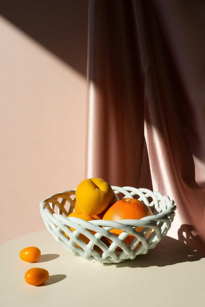 The Sicilia ceramic Fruit Baskets typify the Southern European aesthetic of organic forms and geometric lines. Showcasing both expert craftsmanship and the purity of the natural materials used, the Fruit Baskets perform both as a practical and decorative piece.