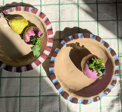 Our organically shaped, irregular stoneware pieces are hand built and hand glazed, so each piece may vary slightly in their design or colour. There will be slight imperfections as they are all made by hand. These small variations in the tones and shape make them completely unique to you!