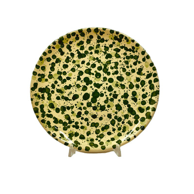Simple rustic chic round dinner plate. Pair this plate with the classic soup bowl to complete the set. Handmade & hand-painted in 2 tone Tuscan green on a soft yellow base.