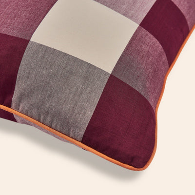 Offered here in Fig - featuring aubergine and white tones. The cushion cover is 100% woven Indian cotton with a duck feather insert.