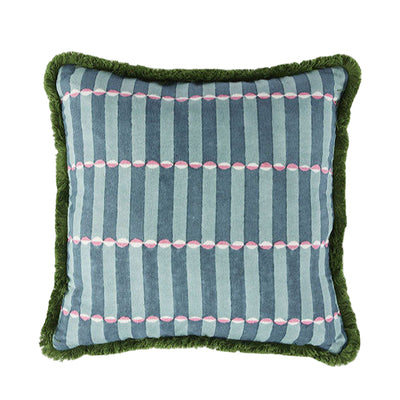 The Luna hand-block print has become icon here at Molly Mahon and their latest cushion celebrates it's timeless style. Enjoy adding a touch of newness, rich colours and luxury trims to your space. Fabric hand-block printed in India finished with 3cm brushed viscose fringe. Cushion made in the U.K. Luna: 100% Linen Peter Hand-dyed:100% Cotton