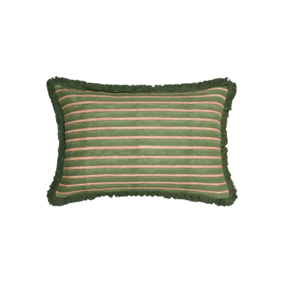 Edo Stripe Cushion - Moss Green and Pink