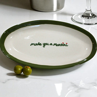 A little love goes a long way. Our hand-painted “made you a martini” tray is crafted to bring charm to any gathering — the perfect size for olives or nuts. Versatile enough to serve as a chic catchall on a coffee table or a thoughtful gift for someone special. Each tray is one-of-a-kind, painted by hand, so no two are ever alike