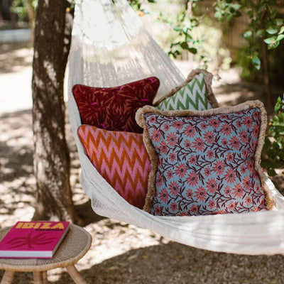 Produced energy-efficiently without harmful coatings, these cushions endure sun and light rain, thanks to their water-absorbing yet quick-drying nature. Resistant to unpleasant smells, discoloration, wrinkles, and dirt, they maintain color and allure. You can leave the cushions out in the rain, but if you like your cushions to stay dry, we do recommend bringing them inside. The filling is sturdier than an indoor filling, but is still plenty soft to be used indoors as well.